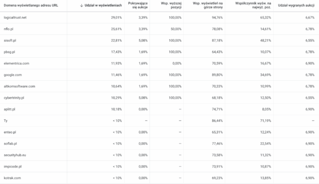 Udział w wyświetleniach po trzech miesiącach działań naszych kampani Google Ads: