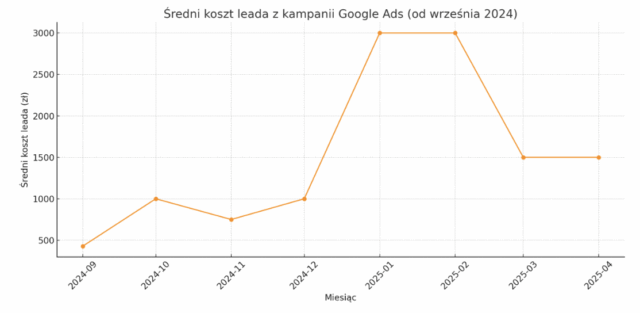 Wygenerowany lead w styczniu 2025 został oceniony na 5 i doprowadził do wartościowej sprzedaży, co wiązało się z dużym profitem, szczególnie w stosunku stosunkowo niskich kosztów działań Google Ads. W tym wypadku zatem, wysoki koszt leada nie miał znaczenia, gdyż lead ten doprowadził do dużego kontraktu.